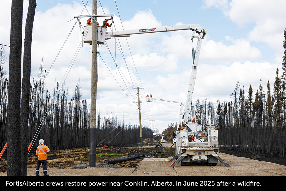 Wildfire conditions in Alberta can change quickly. That’s why FortisAlberta prepares yearround to reduce wildfire risk and help keep communities safe. In 2026, we continue to invest in safety measures that protect the communities we serve while delivering safe and reliable electricity across the province.